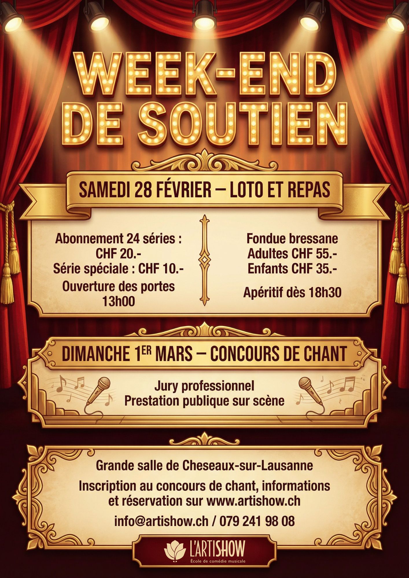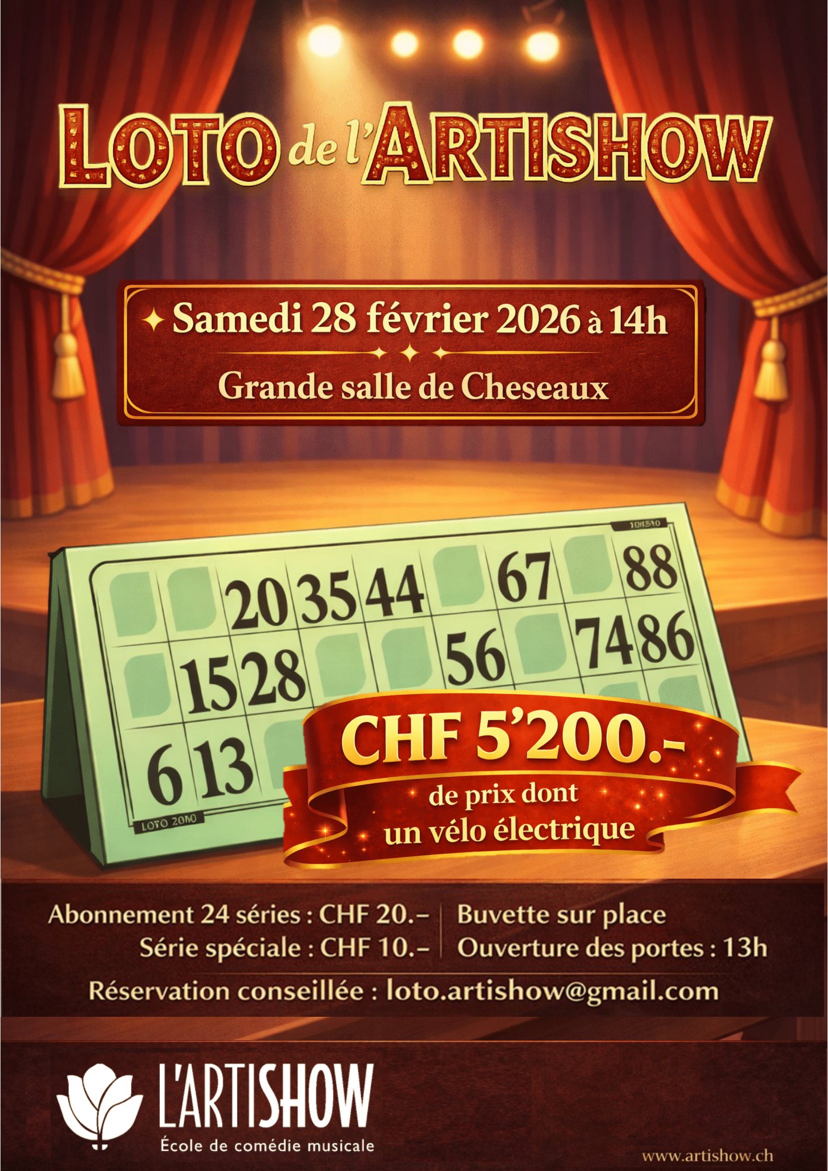 Pour toutes autres questions, tu peux nous contacter par email à info@artishow.ch